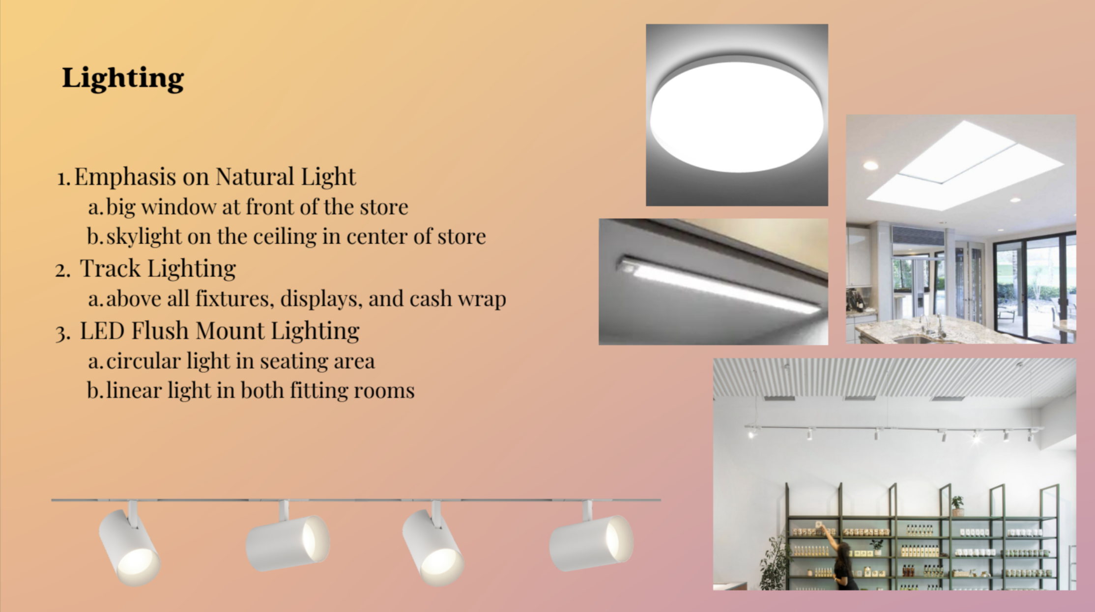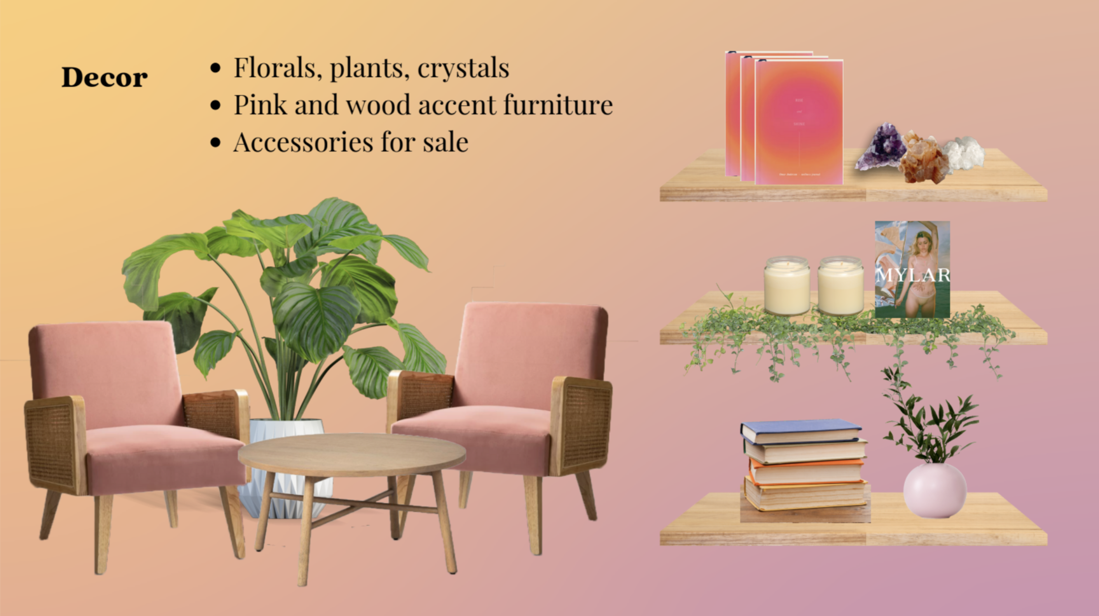 I developed a design plan for a small intimates brand's potential brick-and-mortar store. Utilizing InDesign and Canva, I created several window display concepts and an interior floor plan that aligned with the brand's existing graphics and aesthetic.